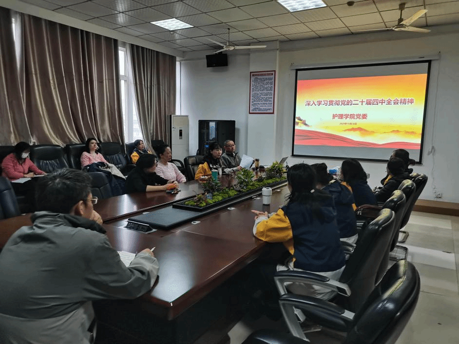 江中新闻网讯 (通讯员 杨芳)2025年10月30日,护理学院在学院会议室召开党的二十届四中全会精神学习动员部署会。学院领导班子成员及全体教职工党员参加会议,围绕全会提出的“十五五”时期发展目标与部署,结合护理学科特色与人才培养使命,深入探讨贯彻落实全会精神的具体路径。会议由学院党委书记刘仁民同志主持。