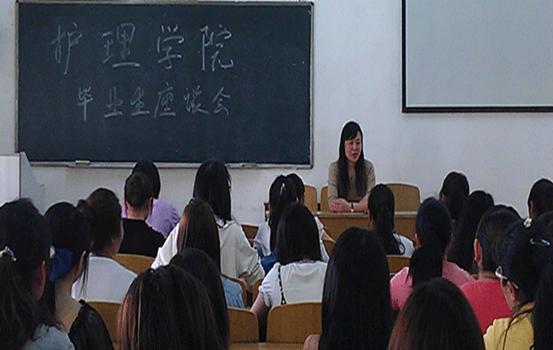 余亚微书记结合实际,做了毕业相关工作介绍,如档案的存放,协议签订等,并分析了当前护理专业毕业生的就业形势。她指出,大家在选择用人单位时应该把眼光打开,从自身的实际情况出发,综合各种因素考虑自己的就业方向。